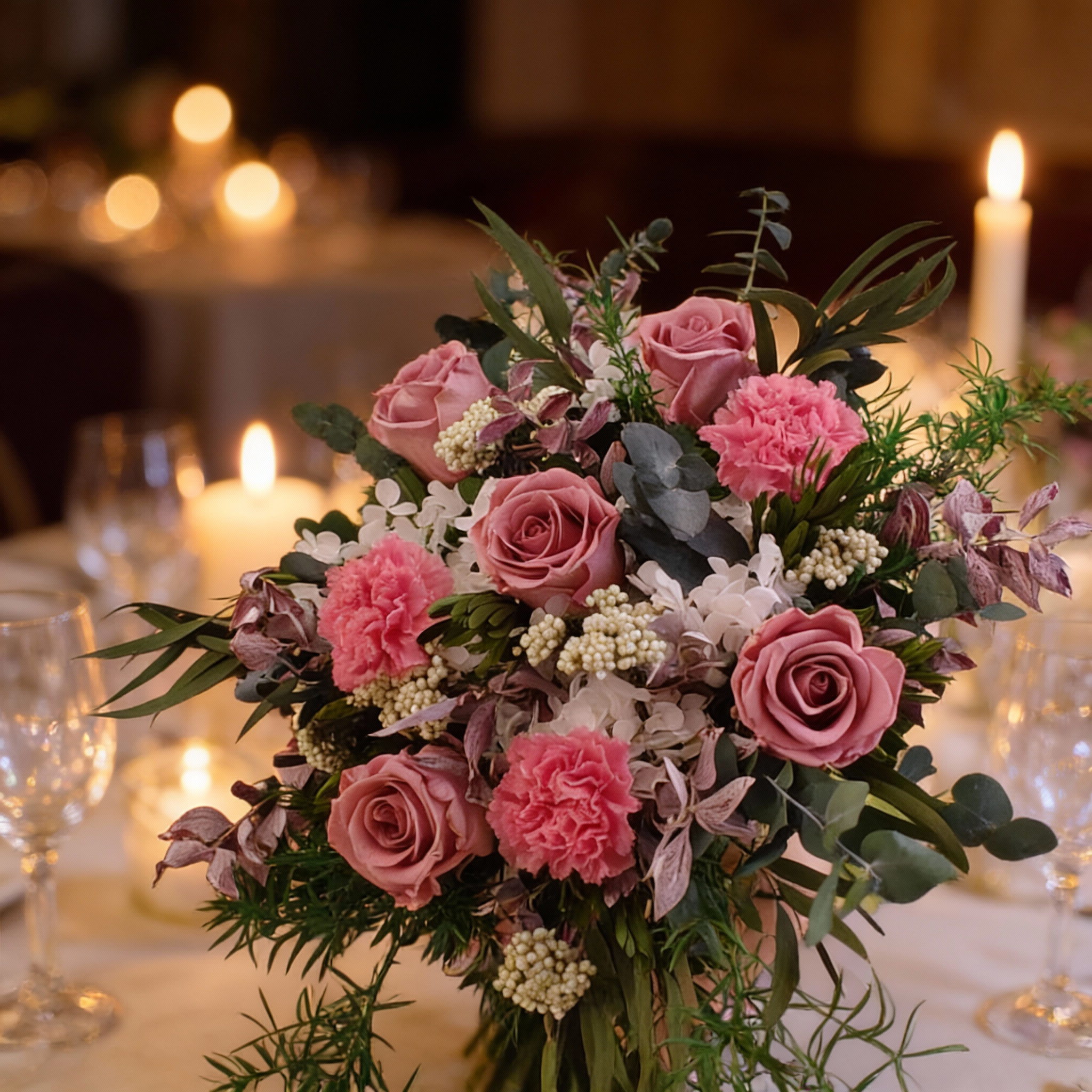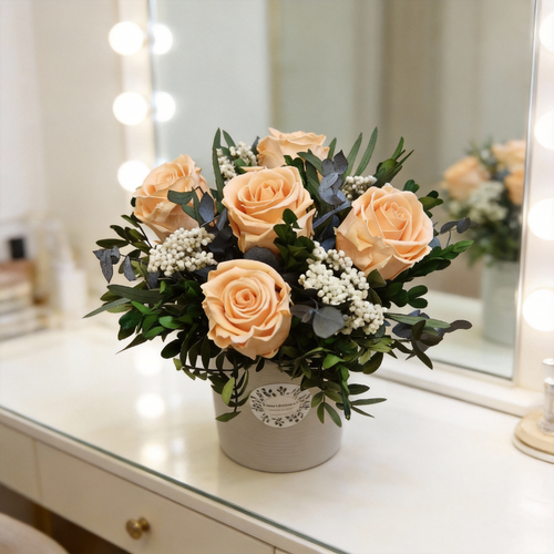 Unelma - nude sävyinen kukka-asetelma nukkuvista kukista