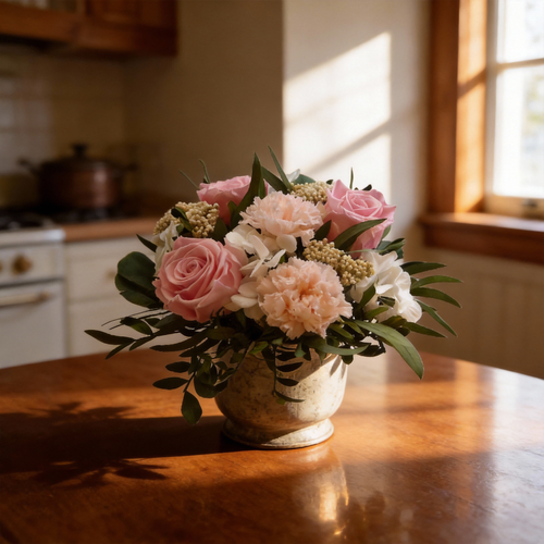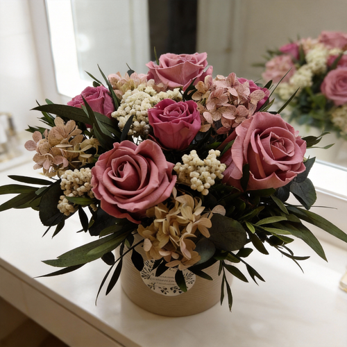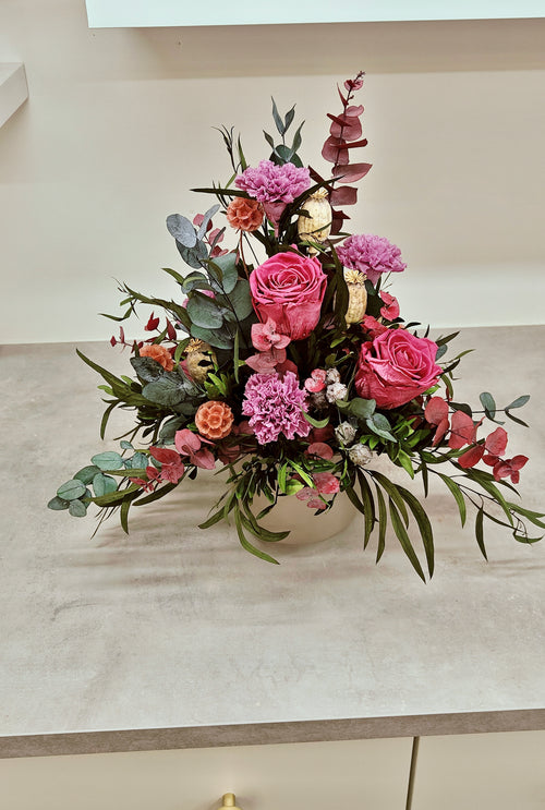 Hempeys - vanha roosa kukka-asetelma nukkuvista kukista